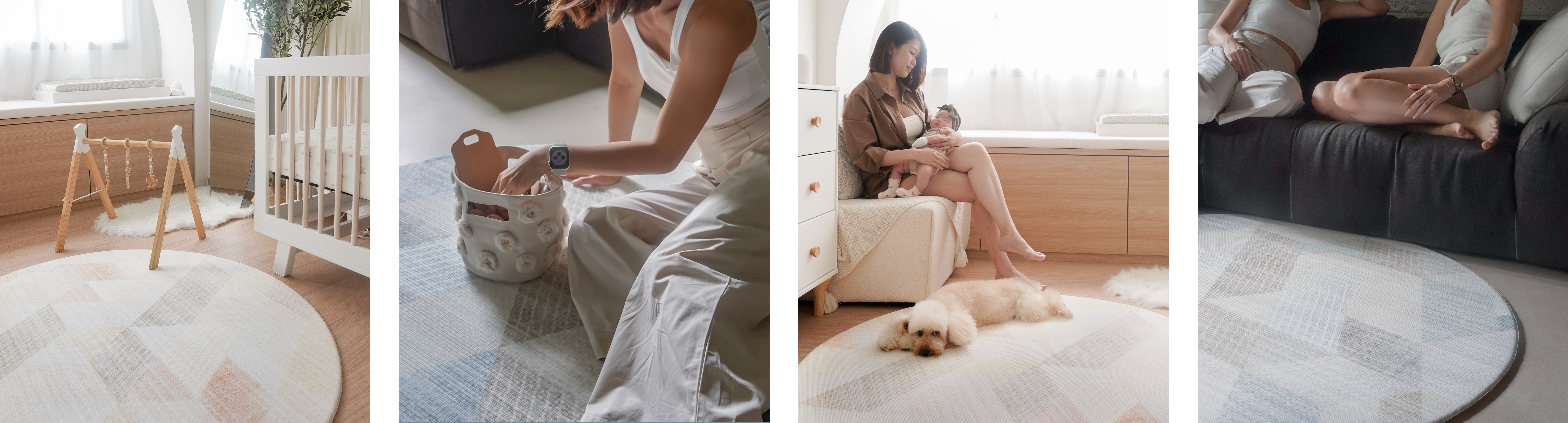 Our playmats are the perfect and timeless addition to your modern home, blending into any home design, like a modern rug. The play mat provides a safe cushioned surface for your little one for all kinds of play and activities, while elevating everyday living.
